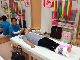 まず丁寧な検査をしその人に合った施術や運動用枕、ゴムを使って運動をします!